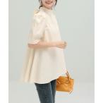 ブラウス シャツ バンドカラー袖ボリュームブラウス レディース