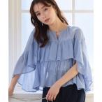 ブラウス シャツ 袖フリルサイドギャザーフレアブラウス レディース