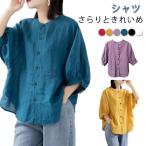 シャツ レディース 羽織り 涼しい トップス ノーカラー シャツ 七分袖 夏 薄手 半袖 7分袖 シャツブラウス ガーゼシャツ tシャツ 体型カバー