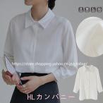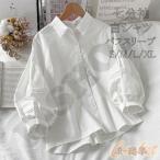 白シャツ シャツブラウス 春夏 きれいめ 七分袖 春物 レディース 前開き ボリューム袖 ゆったり 折襟 ボタン留め デザイン 大きいサイズ 無地