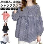切り替え ストライプ シャツ レディース 無地 ストライプ柄 春 ブラウス レディース 秋 ブラウス シャツブラウス ストライプ 七分袖 トップス シ