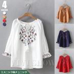 レディース ブラウス 七分袖 シャツ 花柄刺繍 Tシャツ 綿 チュニック ス エスニック風森ガール風
