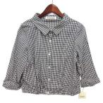 未使用品 ストロベリーフィールズ STRAWBERRY-FIELDS ギンガムチェック クロップド シャツ ブラウス 裾ゴム 七分袖 ブラック ホワイト 2