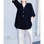 tシャツ nAvy SARARI 接触冷感 スキッパー5分袖ブラウス レディース