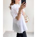 ブラウス シャツ 麻調合繊フリルデザインブラウス レディース
