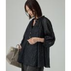 ブラウス シャツ シアーフラワープリント フレアータイブラウス レディース