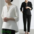 七分袖ブラウス パール付きトップス レディース フォーマル おしゃれ エレガント トップス通勤 ビジネス 春 秋 レディース 体型カバー テーパードパンツ 結婚式