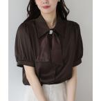 ブラウス シャツ リボン 付き ボウタイ シャツ ブラウス 半袖 ステッチ デザイン レディース