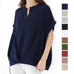 ブラウス シャツ カジュアルな中にも上品さを。綿100% 袖山タックラグラン半袖Tシャツ レディース