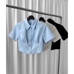 ブラウス シャツ 「LVEU.」ウエストデザイン半袖クロップドシャツ / トップス シャツ 半袖 クロップド ショート 韓国 韓国ファッション ブラッ