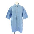 オーラリー ウォッシュ加工フィンクスツイルハーフスリーブシャツ ブラウス 半袖 レギュラーカラー 無地 水色 ライトブルー A25SS05TN