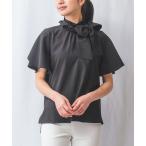 SHIPS WOMEN little black:<手洗い可能>パール 釦 フリル チュール 半袖 ブラウス シップス トップス シャツ・ブラウス ブラック ホワイト【送料無料】