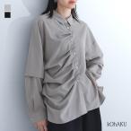 シャツ レディース ブラウス トップス 長袖 半袖 2way 襟付き 羽織 タック アシンメトリー ヒップが隠れる 返品交換不可 「メール便可」「10」