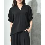 ブラウス シャツ モスクレープVネックパールデザイン半袖ブラウス レディース