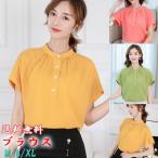シャツ ブラウス レディース 半袖 無地 40代 トップス 夏 ボタン飾り 体型カバー ゆったり 大きいサイズ 20代 送料無料 チュニック 20代30代40代50代