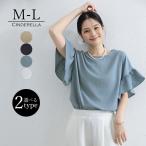 ブラウス シャツ 「累計販売枚数1万枚突破!」シフォンジョーゼット半袖無地&ドットプリント アソートラッフルスリーブブラウス レディース