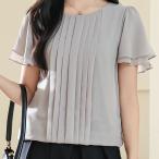 センター プリーツ ラウンドネック 半袖 シアー ブラウス 女性 レディース トップス プルオーバー 春 夏 単色 無地 透け感 シフォン フレア袖 レイヤード 上品 クラシカル フェミニン エレガント 華やか ドレッシー フォーマル インナー