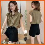 【全品10%OFF】お買い物マラソン限定クーポン配布中!ブラウス レディース ボウタイ リボン Vネック シャツ シフォン 胸元 半袖 大きいサイズ スーツ インナー フォマール オフィス 通勤 夏 S M L 2L 3L