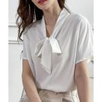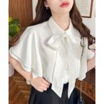 ブラウス シャツ ボウタイ付き半袖シフォンブラウス レディース