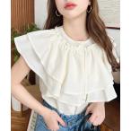 ブラウス シャツ ダブルフリル半袖ブラウス レディース