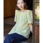 ブラウス シャツ 花柄ピンタック フレア袖 裾シャーリングブラウストップス レディース