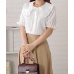 ブラウス シャツ フリル付ビッグカラー半袖ブラウス レディース