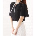 ブラウス シャツ ボウタイ付き半袖シフォンブラウス レディース