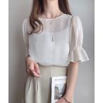 ブラウス シャツ シアーフレアスリーブブラウス レディース