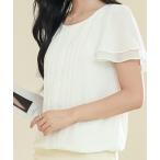 ブラウス シャツ 半袖 フロントタック フレア袖 シフォンブラウス レディース