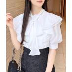 ブラウス シャツ 2Wayリボンシアーフリル半袖ブラウス レディース