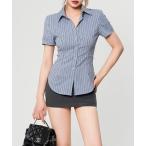 ブラウス シャツ 「新作」ストライプ ウエストシェイプシャツ レディース