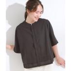 ブラウス シャツ ストライプバンドカラー半袖シャツ レディース