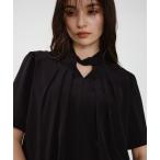 ブラウス シャツ シアートリコット シャーリングネックブラウス レディース