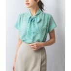 ブラウス シャツ 「NARACAMICIE」バスケット幾何シフォンボウタイ半袖ブラウス レディース