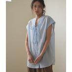 ブラウス シャツ 起毛エンブロイダリーハーフスリーブシャツ レディース