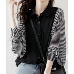 ブラウス シャツ シフォンジョーゼット配色ダブルカラー長袖ブラウス レディース