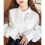 ブラウス シャツ 衿ワンポイント刺繍ピコレース長袖ブラウス レディース