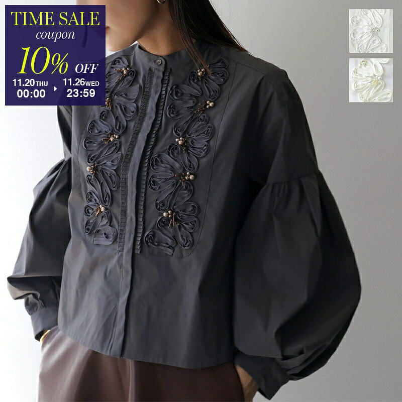 【ブラックフライデー・11/26-23:59迄10%OFFクーポン】MARILYN MOON SOI-MeME マリリンムーン ソワメム ブラウス code embroidery pearl blouse 4253-118 レディース コード刺繍 パール ビーズ 長袖 カラー3色【cp_ten】