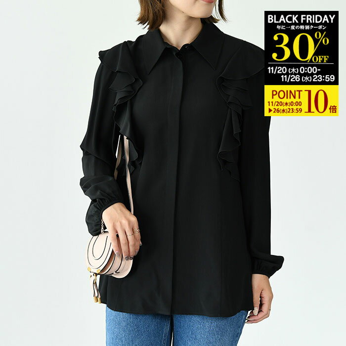 【30%OFFクーポン&P10倍】CHLOE クロエ トップス ラッフルブラウス CHC23SHT15004 レディース ブラック フリル フェミニン ブラウス 長袖 きれいめ エレガント シルク 上品 春