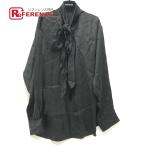 BALENCIAGA バレンシアガ 725061 ロゴ 総柄 ジャカードビスコース リボン ブラウス レーヨン ブラック レディース【中古】新品同様