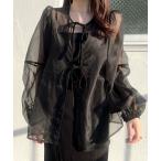 ブラウス シャツ バルーンスリーブシアーブラウス レディース