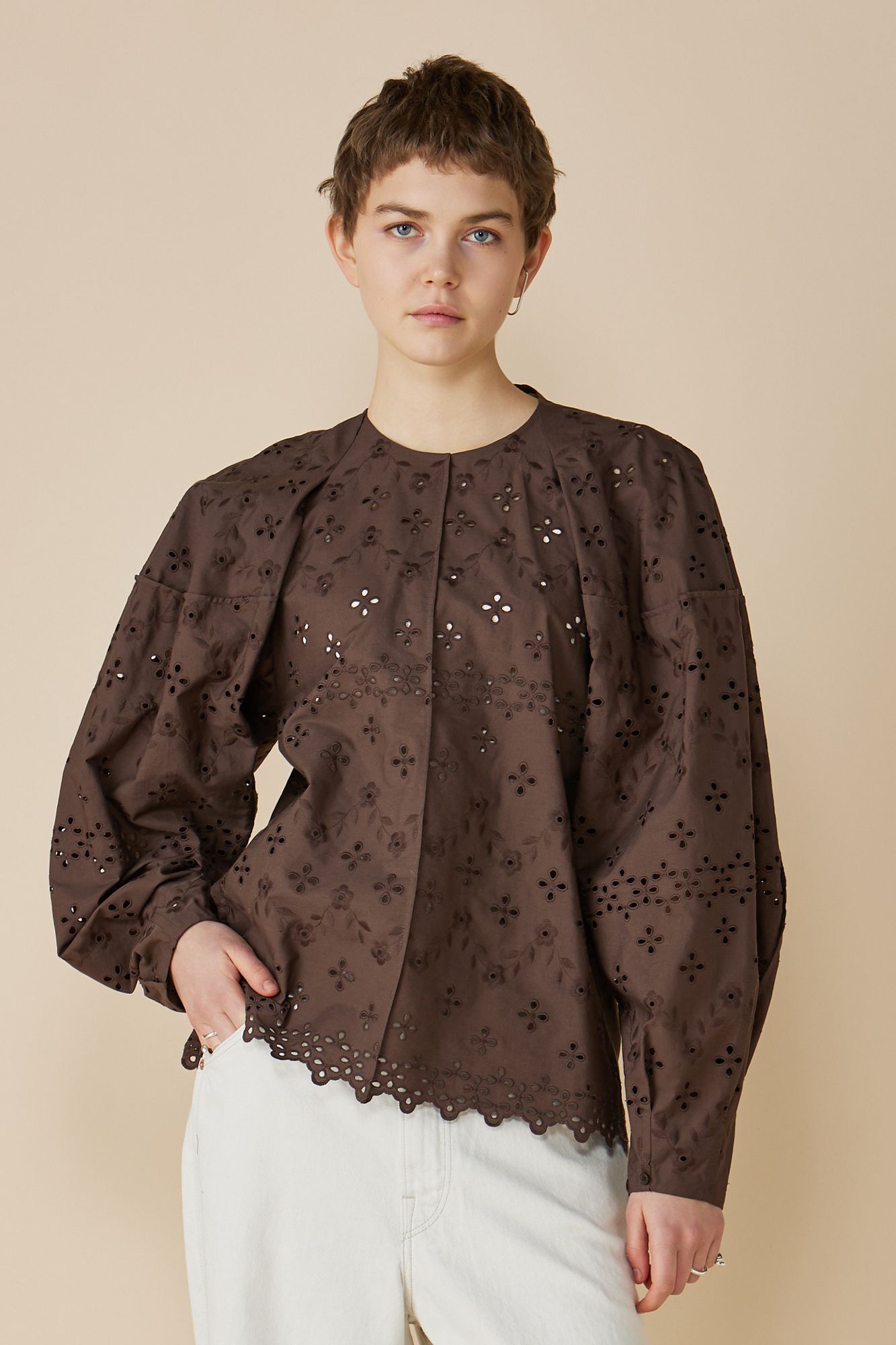 BLAMINK(ブラミンク)/コットンエンブロイダリーノースリブブラウス