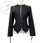 シャネル ジャケット スーツ CHANEL ブラック ウール シルク ラッフル トリム スカート グリポア宝石 カール・ラガーフェルド 超美品 34 38