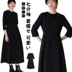 ブラックフォーマル ワンピース ロングワンピース フォーマル 黒 七分袖 レディース ラウンドネック Aライン ブラックドレス 大人 着痩せ 可愛い