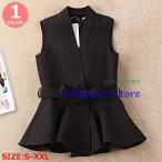 スーツベスト ジレ レディース フォーマル ベスト 前開き 春 秋 おしゃれ ノースリーブ Aライン フレア Vネック オフィス カーディガン ノーカラー トップス