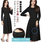 フォーマル ワンピース 喪服 レディース 礼服 春 秋 冬 きれいめ 黒 ブラック クルーネック フレア Aライン ドレス ひざ丈 ロング丈 長袖 3