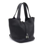 エルメス ピコタンロックMM Y刻印 2020年製 トリヨンクレマンス ブラック ハンドバッグ トートバッグ シルバー金具 黒 22cm 中古 送料無料