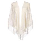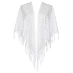 Elerevyo イブニングドレス用のショールとラップ、結婚式やフォーマルパーティー用のレースメッシュフリンジトライアングルスカーフ ホワイト 180