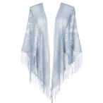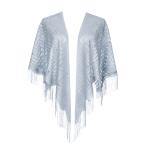 Elerevyo イブニングドレス用のショールとラップ、結婚式やフォーマルパーティー用のレースメッシュフリンジトライアングルスカーフ グレー 180x