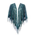 Elerevyo イブニングドレス用のショールとラップ、結婚式やフォーマルパーティー用のレースメッシュフリンジトライアングルスカーフ ダーク緑 180